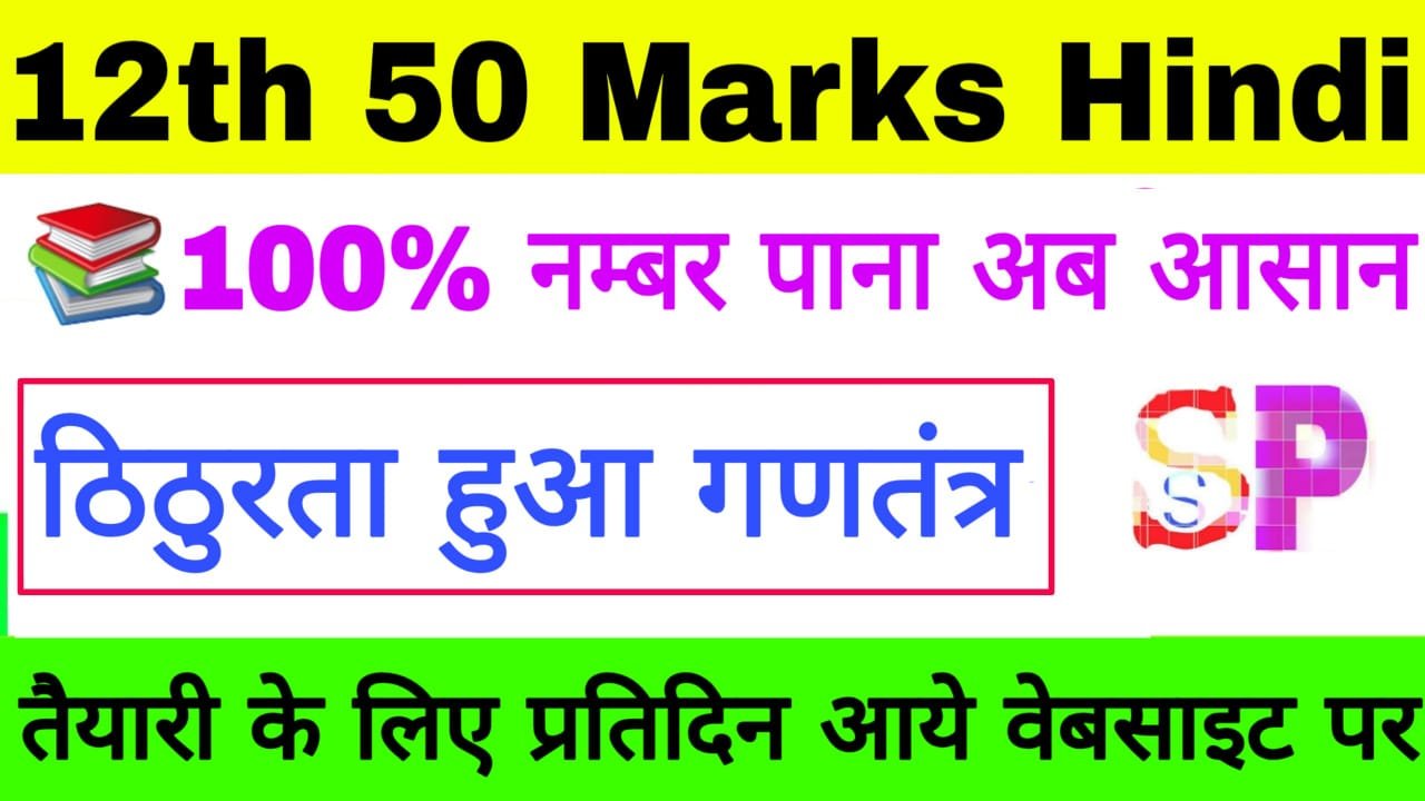 bihar 12th exam 50 Marks Hindi Thithurta Hua Gantantra ठिठुरता हुआ गणतंत्र Chapter VVI Objective Question